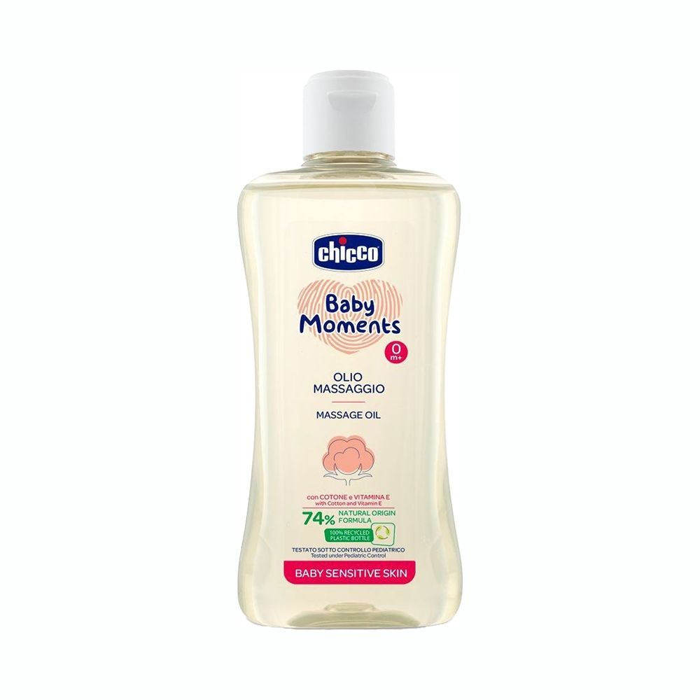 Chicco Baby Moments Massage Oil is a premium skincare product specially formulated for babies’ sensitive skin. This 200ml massage oil contains cotton extract and Vitamin E in a 74% natural origin formula. Designed to nourish and protect delicate baby skin, it comes in an eco-friendly 100% recycled plastic bottle and has been tested under pediatric control to ensure safety for your little one from birth.