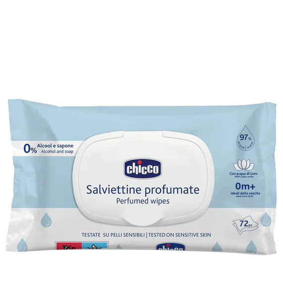 شيكو Chicco New Wipes With Flip Cover – 72Pcs | منتج عناية فاخر للأطفال آمن ولطيف