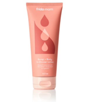 Frida Mom Bump + Body In-Shower Pregnancy Lotion is designed to hydrate and soothe dry, itchy, and stretched skin during pregnancy. Dermatologist-tested and pregnancy-safe, this water-activated lotion lets you lock in moisture while you shower, eliminating the need for post-shower application.